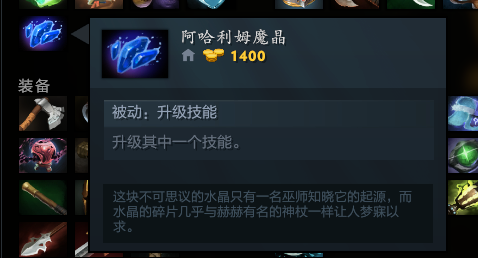 售价1400金,20分钟开始可以购买,效果类似于阿哈利姆神杖,可以永久添加一个新技能或升级一个现有技能。