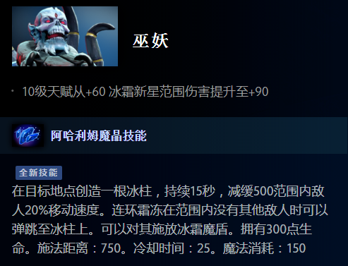 巫妖新技能类似《风暴英雄》里克尔苏加德的冰柱,除了本身范围减速以外,还可以当大招的跳板弹跳。
