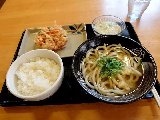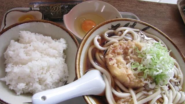 既然有了米饭配拉面,那么米饭配乌冬也会有了,就是不知道在乌冬闻名的香川县,到底乌冬面是米饭的配菜,还是米饭是乌冬面的配菜了![]()