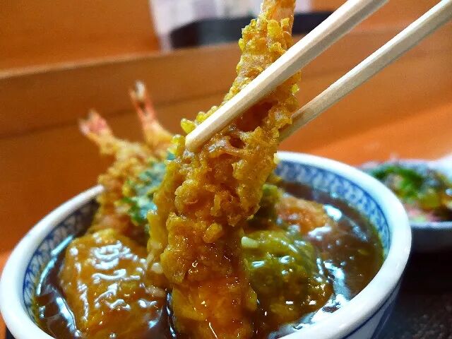 天丼就是天妇罗盖饭,浇上咖喱酱的组合我也是佛了。