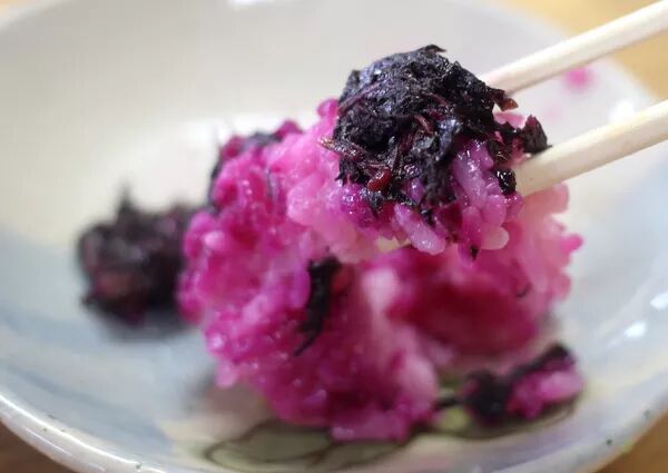 甚至我还在评论里get了一种神奇的腌渍食品,学名叫做赤ずし,用红紫苏给米饭染色后腌渍,然后……当然是配着米饭吃。