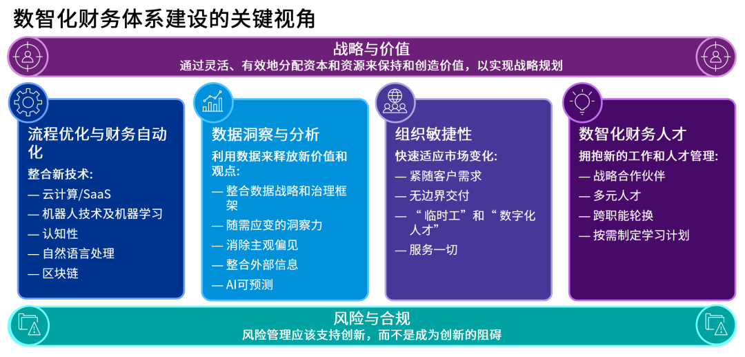 毕马威认为,数智化财务体系应围绕上述关键视角进行建设: