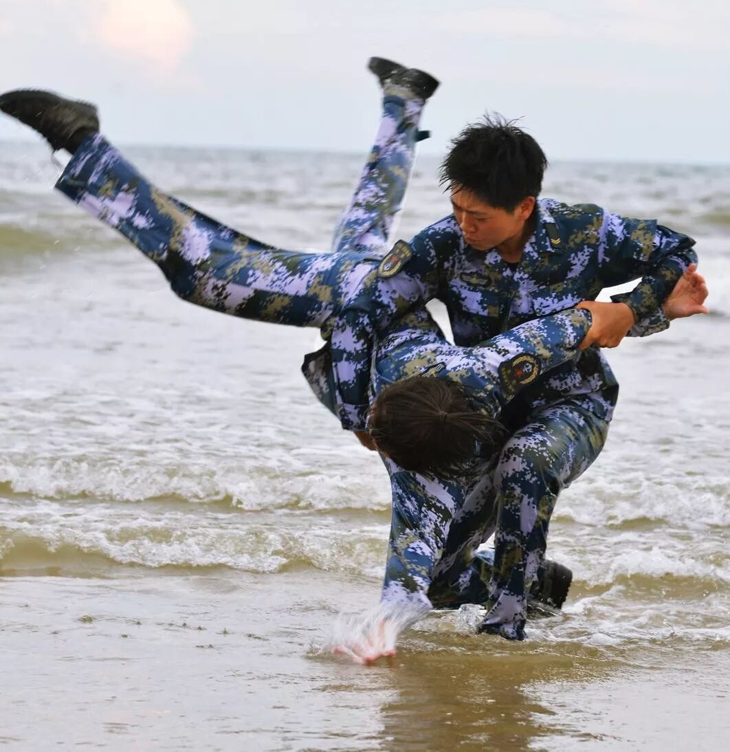 2015年,海军一共招女兵三百多个。我想进的陆战队,只招四十多人。班长跟我说,你要表现得好才能去。所以我训练的时候会比别人更用功,觉得自己力量不够,晚上加练,睡觉前就把脚竖起来,练习俯卧撑,也要多撑几个。还参加演讲比赛,希望自己能够得到陆战队接兵干部的注意。第一个月瘦了二十斤。