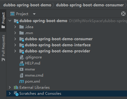 我手边刚好有一个之前搭的一个关于 Dubbo 的 Demo,消费者、生产者都有,我就直接拿来用了: