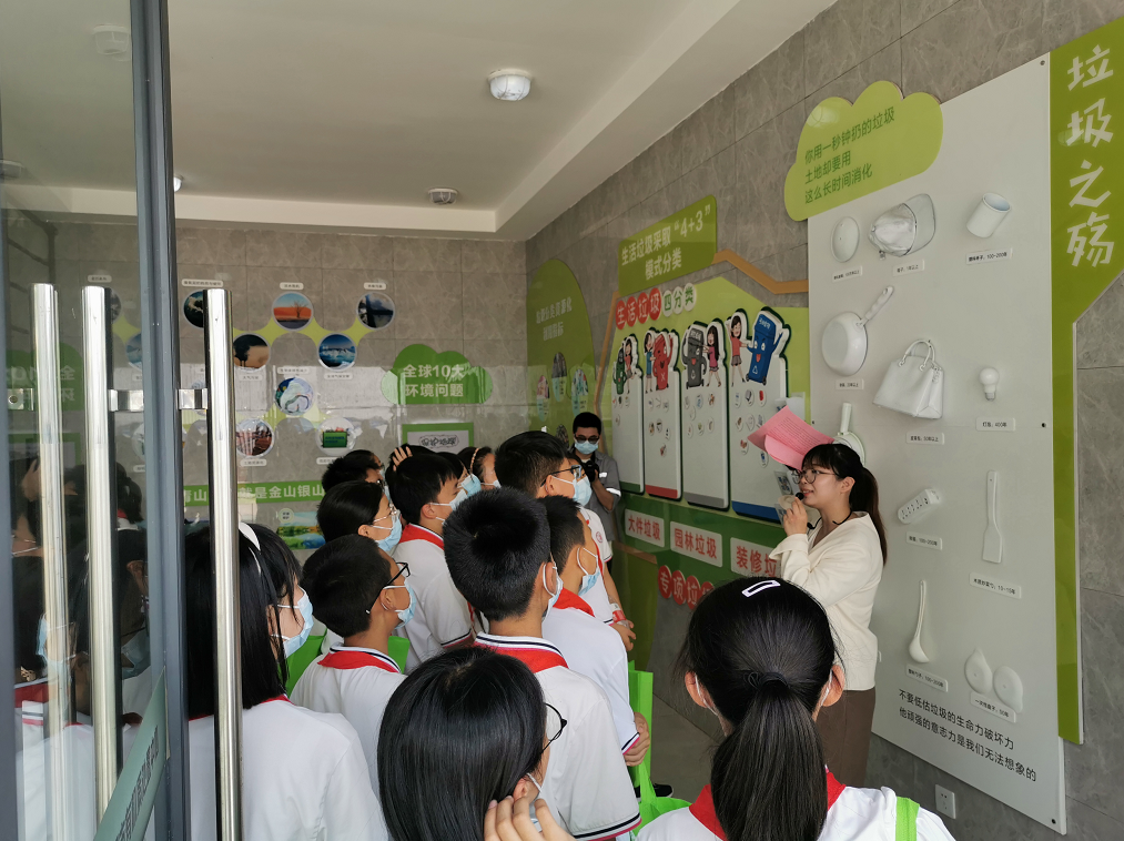 讲解员指了指不远处的绿化景观喷水池,夏日微风使得水面波光粼粼,她问道:“小朋友们,你们猜猜这里的水来自哪里?”“老师,是自来水吧?”几个同学回答的声音并不大。讲解员笑笑:“小朋友们,这里的水来自于我们电厂焚烧发电后产生的回用水,经过循环过滤注入这里。小朋友们,你们看,我们还在里面养了不少观赏鱼。”“哇!”同学们异口同声地发出感叹,原来这循环处理后的水还可以这么干净。在电厂沙盘模型前,孩子们看到等比例缩放的模型,和相关图片背景介绍,不仅感叹道:“原来烧垃圾的焚烧炉这么大!”“原来烧垃圾可以这么环保无害!”