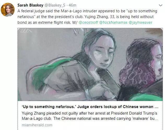 对此,张玉婧的律师在法庭上强调她只是因为沟通误解和被人欺骗,才会来到海湖山庄。张玉婧本人也拒绝认罪。可美国法院却认为一旦给予张玉婧保释,她就会“逃回中国”。法官更是在缺乏证据的情况下说出了“张玉婧看起来是想在海湖庄园干坏事”这样的话语——这也直接成为了一些美国媒体炒作此案的最新素材。