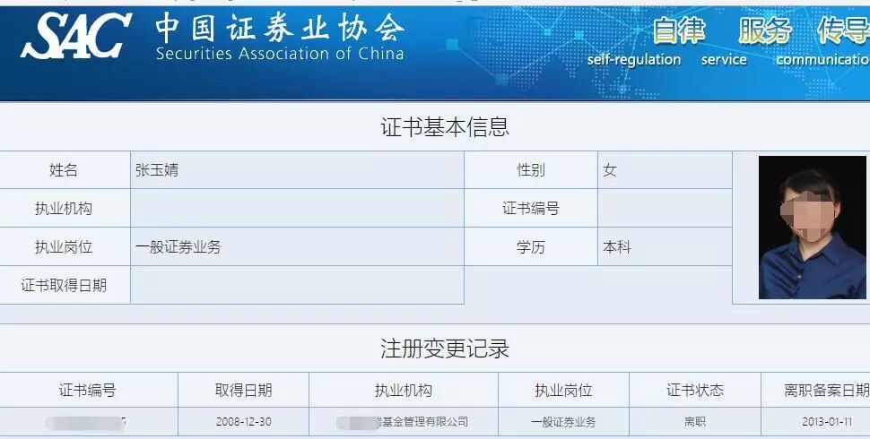 之后,她曾经更换过两家公司。其中一家她2014年时供职的公司,曾在2016年时因操控市场曾被证监会“顶格处罚”过,公司法人也被重罚并被判了缓刑;另一家她在2016年到2017年之间供职的公司则表示,张玉婧确实曾经在他们那里上班,但她当时其实是挂职,主要是为了交社保。