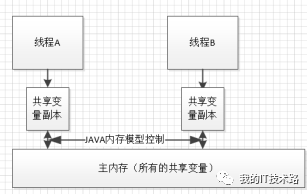 可见性:指在多线程的环境下,如果一个线程修改了堆里面的变量,另一个线程是否立即感知到。在java语言中,每个线程都保留了一份用到的变量在本地缓存,在主存中也有一份,其示意图如下,如何保证线程A修改之后,线程B也
