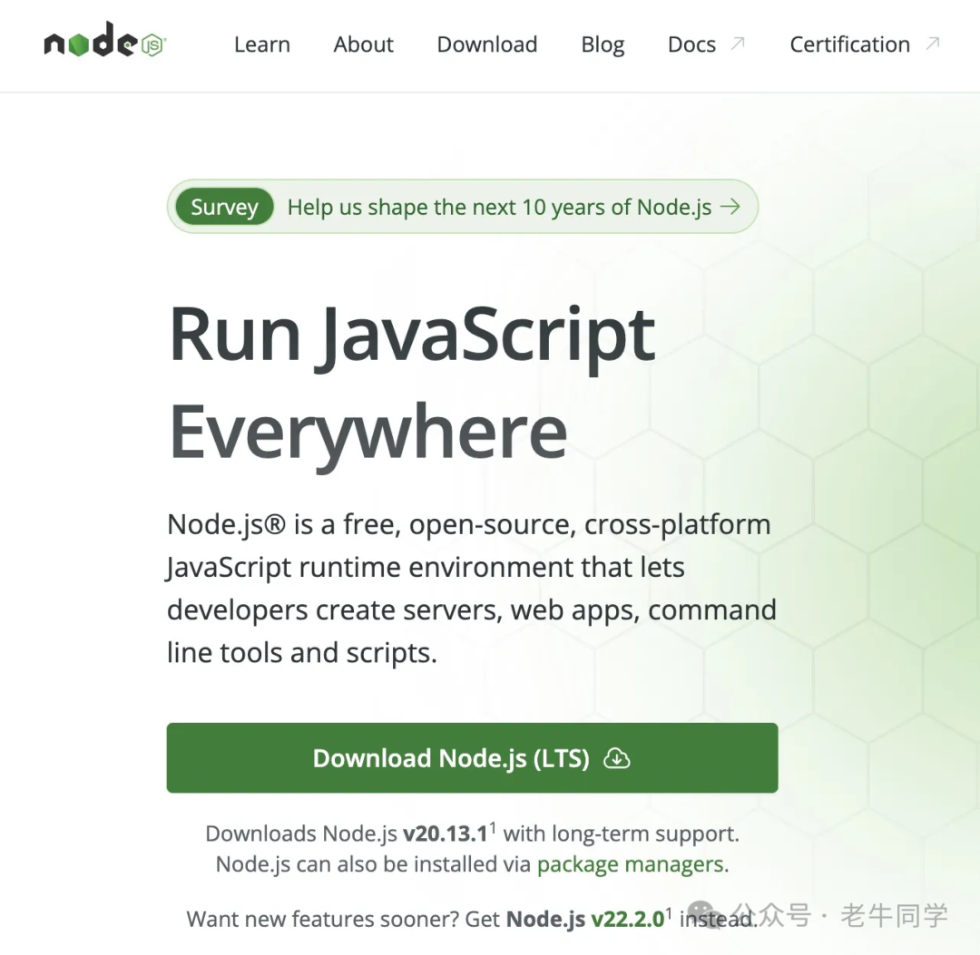 老牛同学安装的版本:v20.13.1(最新版本)
