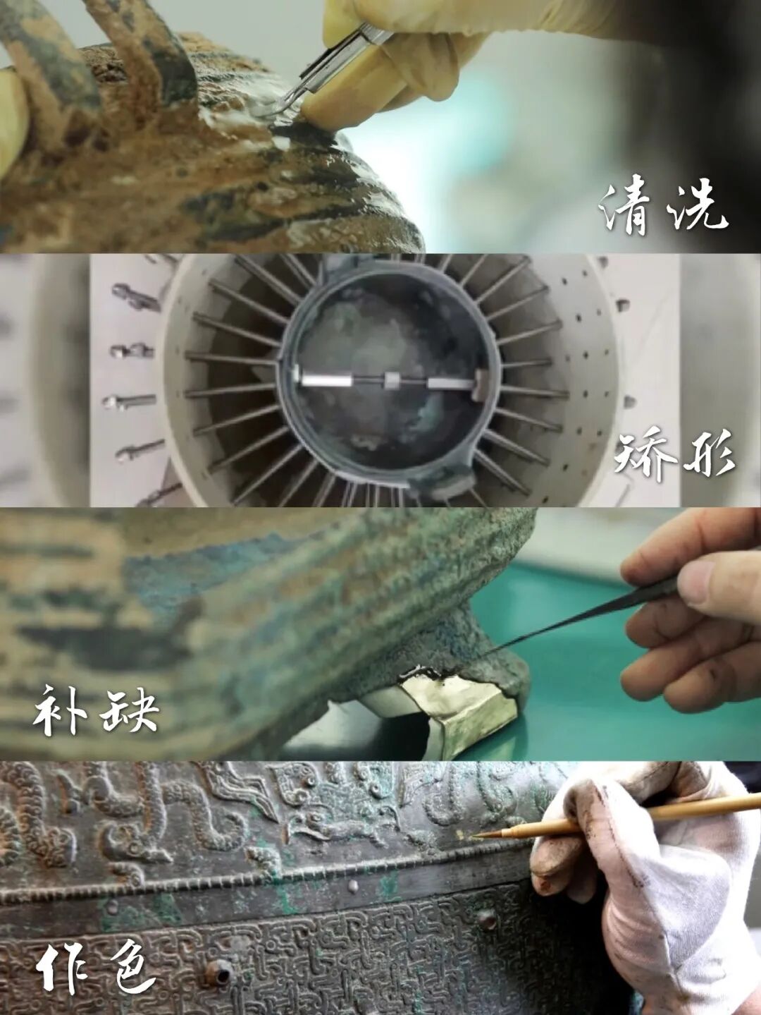 经修复后的青铜器,有多美呢?🎙️ :是可以让后人更好地了解古代信息和文明永流传的程度~