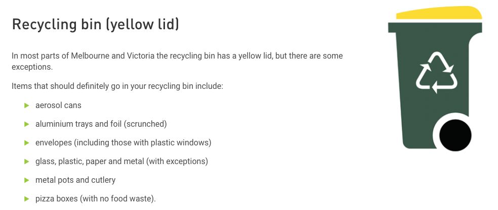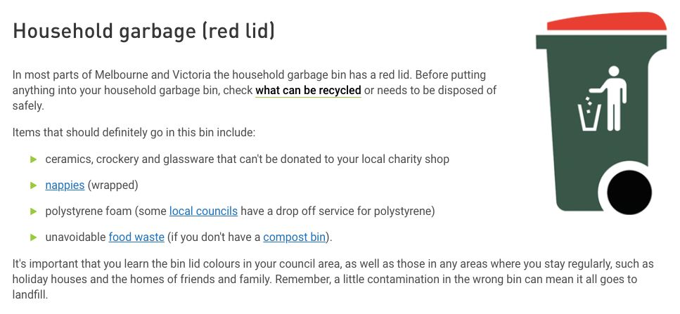 不同地区议会收垃圾的时间也不相同,以墨尔本市议会(City of Melbourne)为例,除了高层公寓楼,其他地方基本都是一周一次,