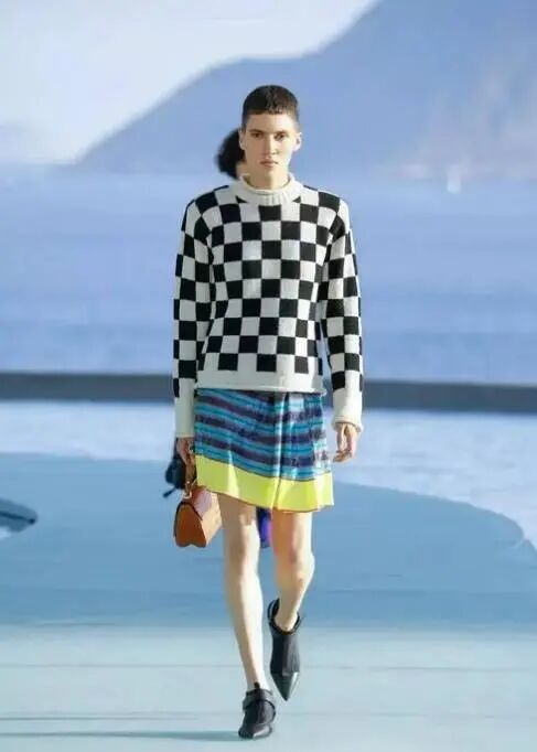 棋盘格就拿捏住了“既独特又共通”的气质。因为相比于其他纯色或者格纹图案,棋盘格的审美普适性极高。简单改变颜色和色块尺寸,就能统合多数人类的审美公约数。比如黑白整齐排列的棋盘格,风格相对比较正统;缩小格纹色块的尺寸,则变成美式校园摩登气质;而通过改变色块的颜色,就能注入颜色本身的特色。可盐可甜小能手,非棋盘格莫属。虽然棋盘格这两年才真正走红,但它却是复古回潮的产物。棋盘格的历史,比你想象中还要悠久。“维希格”起源于上个世纪五六十年代的法国,优雅素净,是表现法式风情时不可替代的图样;“威尔士亲王格”是19世纪由温莎公爵发现并改良,有着正统英伦皇室基因,常与灰棕配色的布料搭配制成西装外套,用来表现贵族气质,后来还在此基础上延伸出了“千鸟格”。“苏格兰格纹”是苏格兰民族文化的象征,颜色变化多元。在19世纪末,英国几乎所有稍有地位与身份的家族都有属于自己的苏格兰格纹织物。每种格纹图案都有点子来头,不过论起哪种格纹是格纹界的老前辈,“棋盘格”定是当仁不让。我国新疆地区出土的织物证明,周朝时期的人们就开始使用方格图样美化织物。因为当时还没有“棋盘”这种意象,所以这些方格图样只能算是棋盘格的雏形,是当时人们朴素审美观下的产物。而现在大热的“棋盘格”则是源于国际象棋棋盘,由8*8黑白相间的网格组成。从赛事走入日常生活的棋盘格,最先“崭露头角”的领域是地板。拼接的色块自带纵深感,天然适合拿来铺地。17世纪荷兰画家彼得·德·霍赫就在自己作品中,将棋盘格元素用于室内地板,强调透视关系。整齐划一的色块排列严谨而不失庄重,所以国外很多历史悠久的教堂地板都有棋盘格的元素。“棋盘格”作为一种经典图样一直存在于人们的视野。不过,让棋盘格这一日常icon华丽变身为时尚icon,是流行文化的助推。在棋盘格的时尚生命历程中,总共有三波小高潮。第一波与赛车的流行有关。1906年纽约长岛的Vanderbilt Trophy车赛,是已知最早的使用黑白格作为赛结旗(Check Flag)的赛车比赛,之后黑白格旗被长久地保留在赛车竞技运动中。与赛车结合的黑白棋盘格,多了速度与激情和反叛的内核。第二波流行,则由牙买加的Ska音乐引领。上个世纪50年代,牙买加音乐人融合了美国的节奏布鲁斯音乐和本地民俗音乐Mento,碰撞出了Ska(斯卡)音乐,歌词里充满打破种族隔阂的政治愿景。棋盘格常出现在Ska音乐的周边上,比如唱片、旗帜、踏板车上,成为了这一音乐流派的代表标志之一,也顺手被灌入了其音乐所包含的主张。棋盘格也因此成为亚文化人群的代表符号。第三波小高潮是Vans的商品化。这一步帮助棋盘格从亚文化领域进入大众主流文化视野。上世纪70年代,Vans创始人的儿子注意许多青少年受赛车、音乐等小众文化影响,为了彰显叛逆和个性,会把鞋子外侧DIY成黑白棋盘格的样式。他将这个图样印在帆布鞋上,于是Vans的经典棋盘格滑板鞋就这样诞生了。因为早有音乐和赛车为棋盘格增添内核,又有商品实体为承托,只要一阵风棋盘格就能起飞。这阵风就是1982年风靡全球的美式青春片《 Fast Times at Ridgemont High 》,片中棋盘格滑板鞋的“植入”一举捧红了Vans这个品牌,也让棋盘格顺势备受潮流青年的追捧,开始在主流文化里露脸。不过当时的棋盘格本格肯定没想到,自己在几十年后能引发半个时尚圈“格式化”的盛景。为啥今年棋盘格这么火呢?为什么年年都有流行色?为什么今年流行棋盘格?这些问题的底层核心都是“谁在制造流行”。自古“流行“的创造有两条路径:时尚工业从上而下的“制造”,平民文化从下而上的“突破”。每年的固定时间,色彩预测机构比如The Color Association (TCCA)、Color Marketing Group (CMG)、International Colour Authority (ICA)等的流行色专家都会齐聚巴黎,开会商量下一季该让时尚圈流行什么颜色。专家们综合考虑环境、政治和印染工艺技术等因素,当然帮助供应商清理仓库里的挤压面料也是“义不容辞”。经过多方考虑,专家们确定年度流行色色板,再由潘通公司发布。其后,经由时装周高奢品牌的呈现和明星穿搭的示范效应,传递给全球的消费者。总而言之,你以为你买到的是自我和个性,但其实你是在为“会议决议”付费。如上文讲到,棋盘格在上个世纪的出圈,是自下而上的圈层突破。最早发端于亚文化群体的棋盘格图案,蕴含着极具反叛精神的小众文化内核,后经由商品化的助推被主流文化“收编”,成为全球潮人的时尚符号。棋盘格在2021年的回潮,则仰赖于完整的“时尚工业流水线生产”——确定流行趋势、时装周呈现、社交媒体宣发,进而全民跟上。在某高奢大厂年度预测会上定下的“棋盘格”元素,先是走上了高定大秀。2017年Louis Vuitton早春度假系列,棋盘格元素露出。2018年Dior春夏高定大秀,棋盘格铺满整个秀场。如果说前几年棋盘格还只算是高奢品牌秀场的配菜,到了2021年,棋盘格就真正成了主角。Chanel 2021女装秋冬系列和LV 2022男装早春系列,都明明白白地把“棋盘格,新一季顶流”刻在秀场。从秀场到街头的转变,则是由社交媒体助攻的。各路明星以自己超强的带货能力,帮助“棋盘格”迅速打开认知度。如果说高奢品牌和明星模特分别是这场时尚潮流的“产品经理”和“市场宣发”,那这些经常“致敬”大牌的快时尚品牌们则是