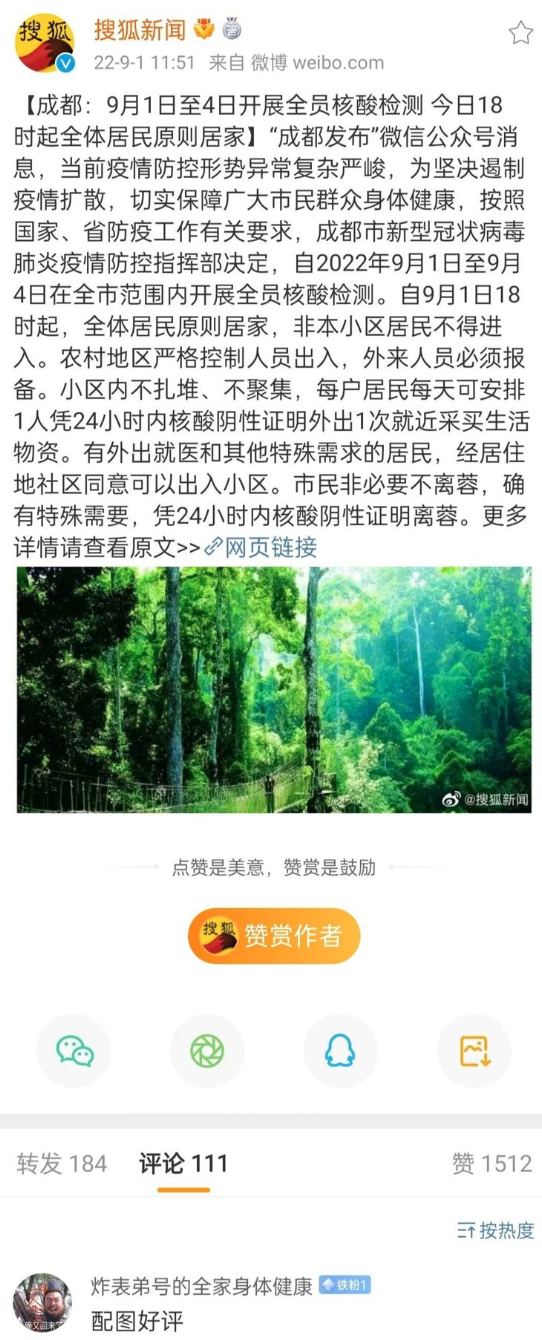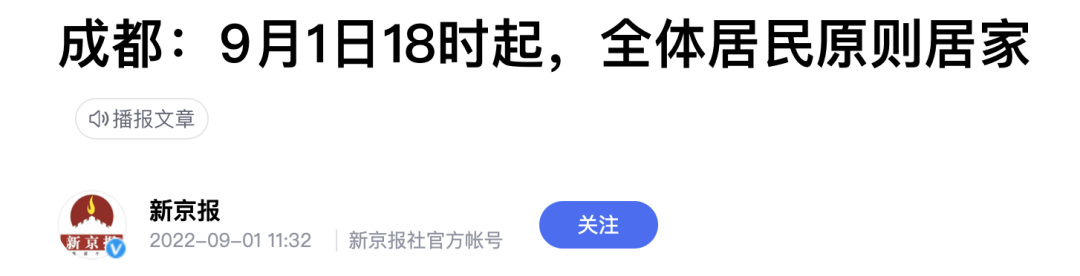 然而,到了9月1号,成都发布了一条消息,消息表示,自9月1日18时起,全体居民原则居家: