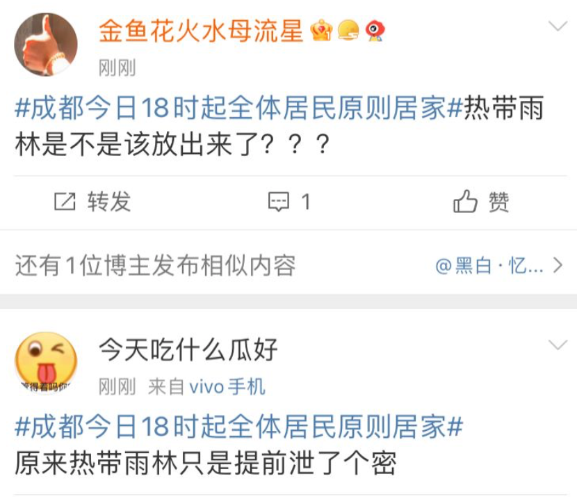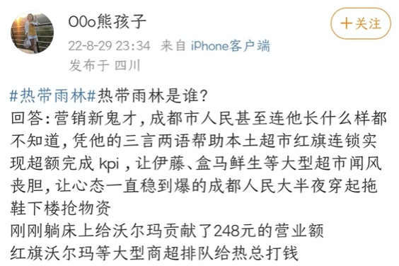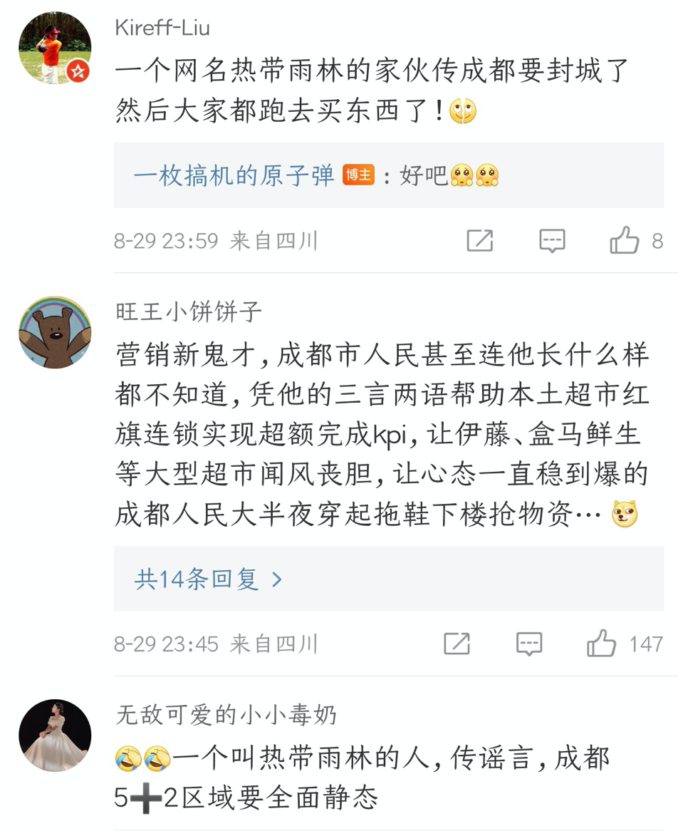 热带雨林,江湖人称“热总”,他被推上热搜的原因,主要就是在8月29号的那天,在没有官方通报的情况下,他就到网络上散布消息说,成都将要静态管理: