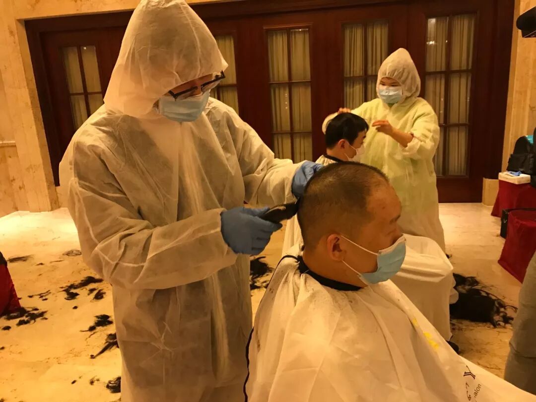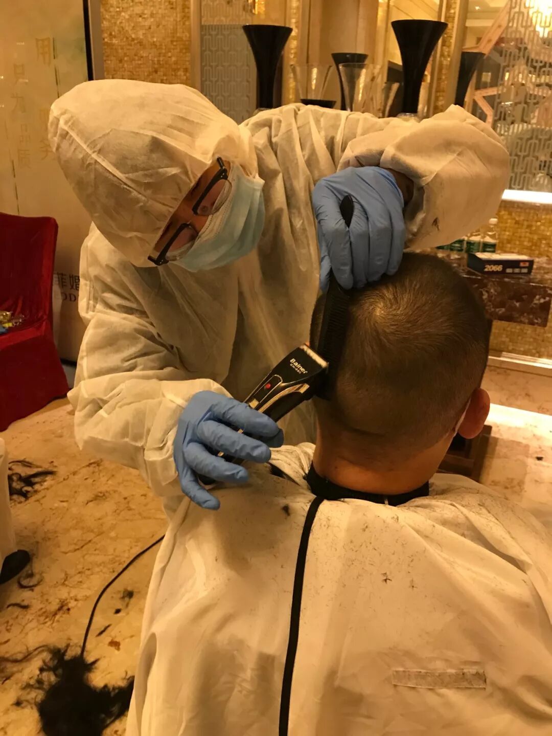 文彬告诉记者,医疗队员理发,男士基本都是光头、寸头、短碎发,女士有的从齐腰、齐胸的长发剪到光头、齐耳短发、碎发。