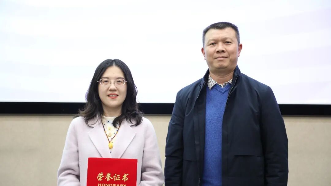 江苏省作协党组成员、书记处书记杨发孟(右)为连尚文学逐浪网签约作家懿小茹颁奖