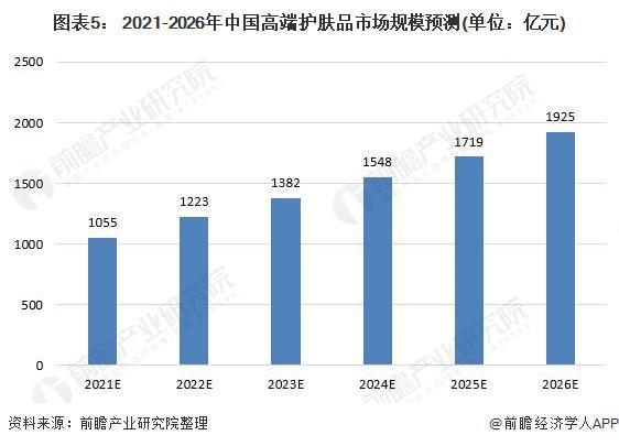 中国高端护肤品市场规模预测 资料来源:前瞻产业研究院整理