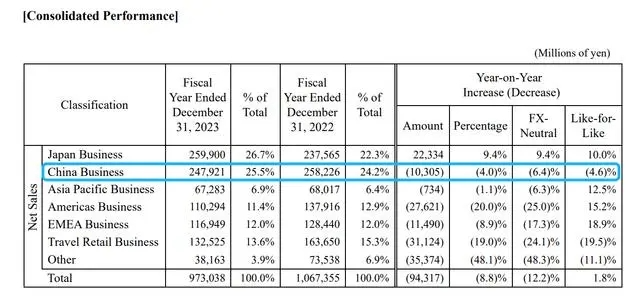 无独有偶,从几家日本化妆品企业发布的2023年财报看,在中国的业务都有不同程度的下滑。