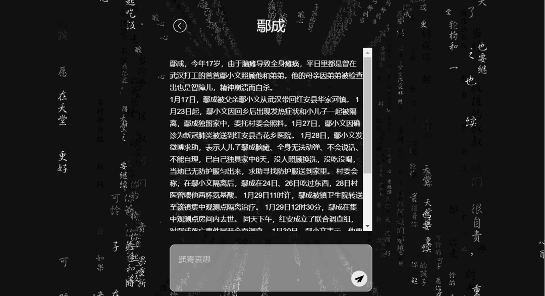 "文亮医生,我会把你的哨声传递下去。天国安好。"