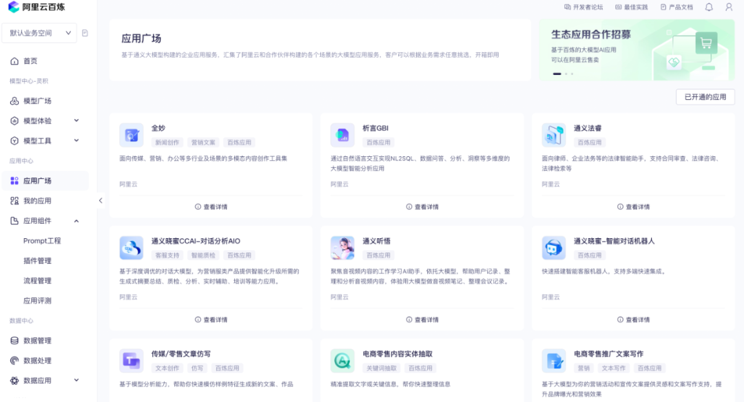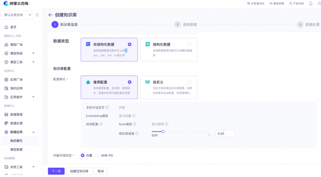 目前业内有很多现成的产品可以快速体验RAG,整体可配置的交互和原理大同小异,推荐阿里云百炼的应用中心来进行相关操作。