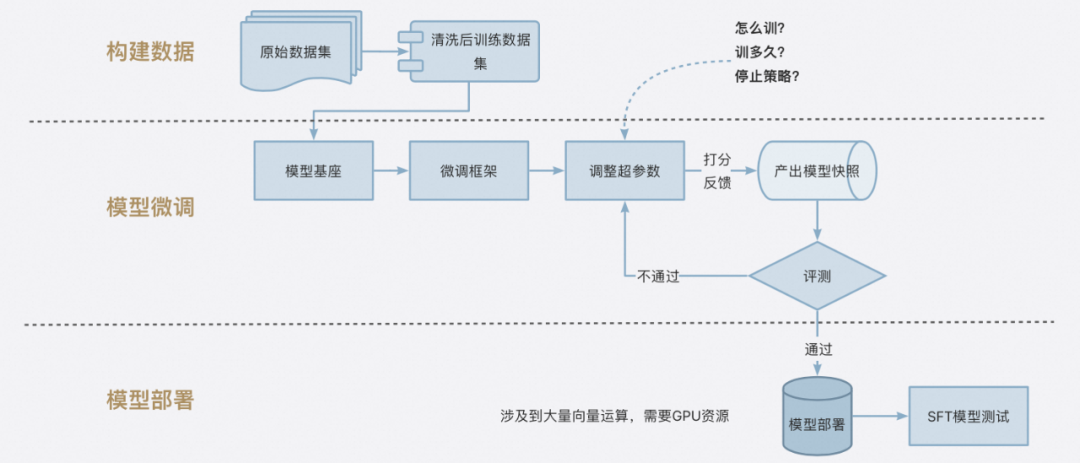 一个SFT的简化版流程图如下所示,一般分为三块内容: