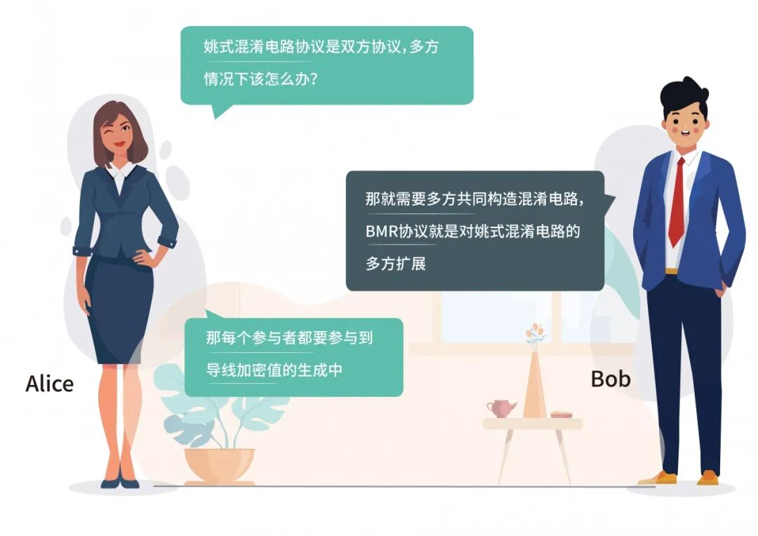 之前介绍的姚氏混淆电路只支持双方计算,BMR(Beaver-Micali-Rogaway)协议将姚氏混淆电路扩充到了多方情景。