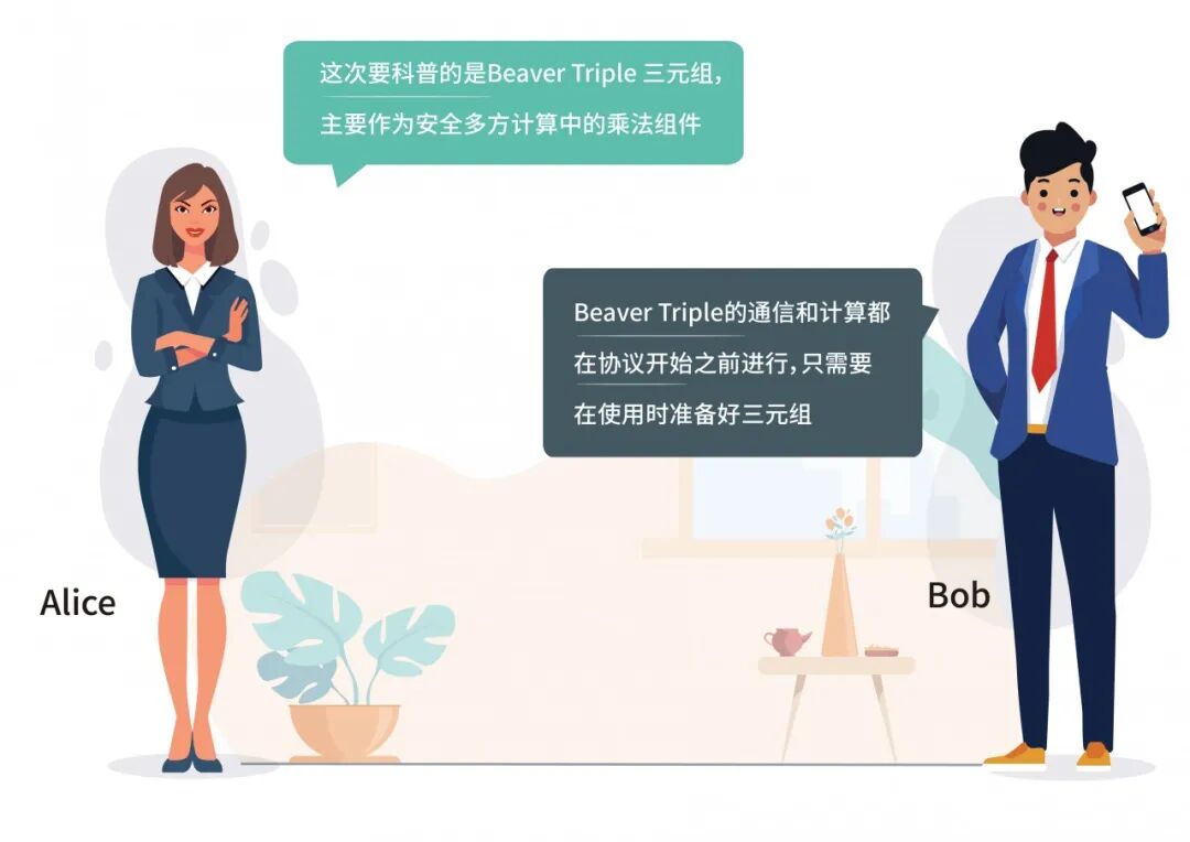 Beaver三元组(Beaver Triple)主要用于安全多方计算协议中的乘法计算。它的应用范围为加法和乘法均为线性的秘密分享机制。