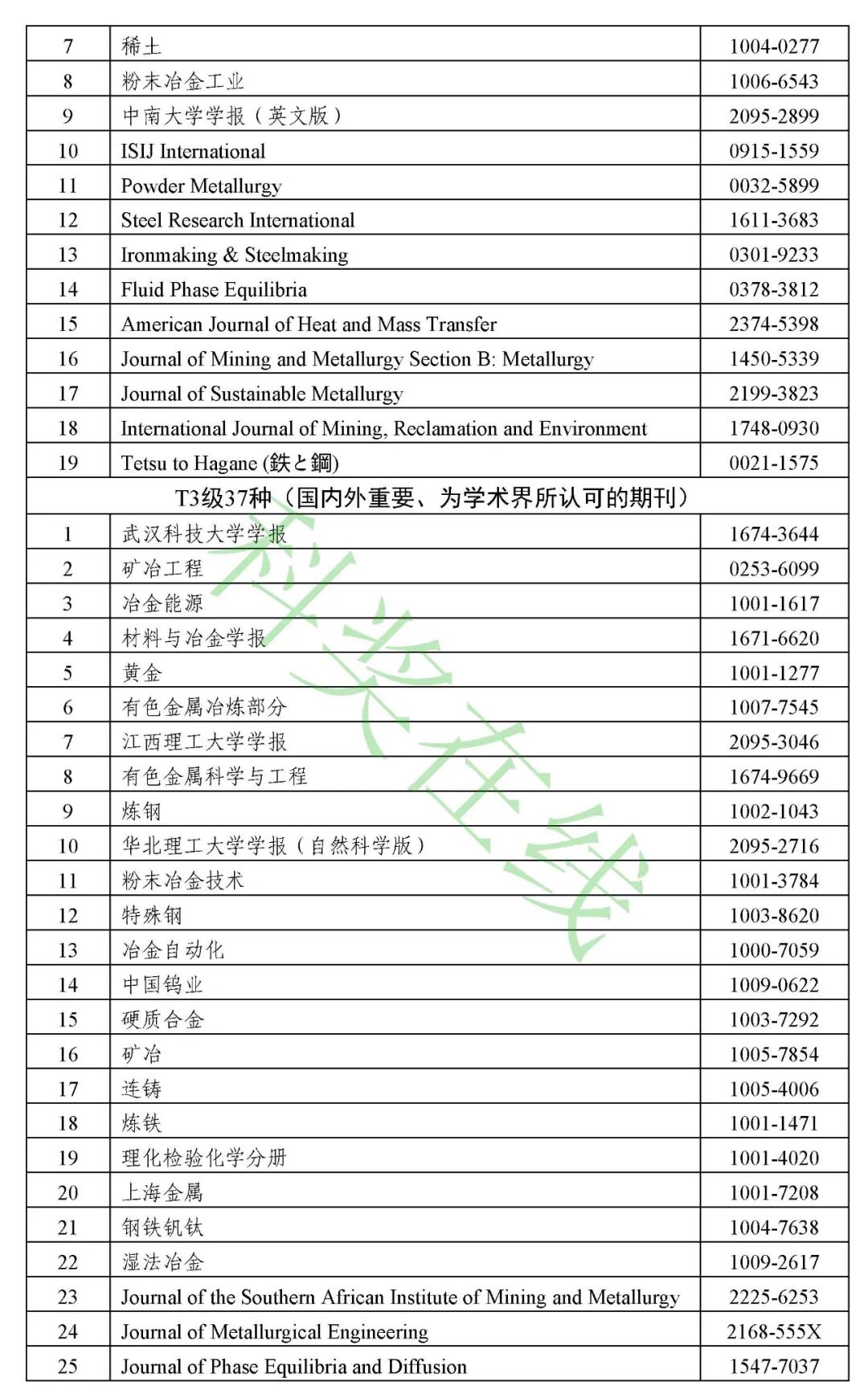 12.有色金属领域高质量科技期刊分级目录(共212种)