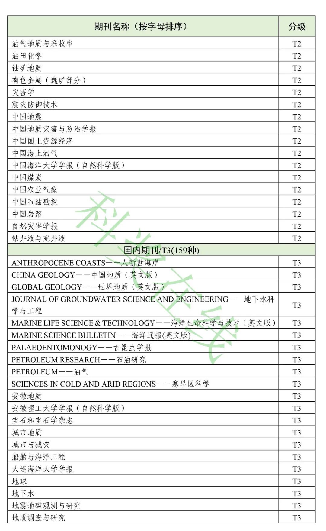 5.地质学领域高质量科技期刊分级目录(共613种)