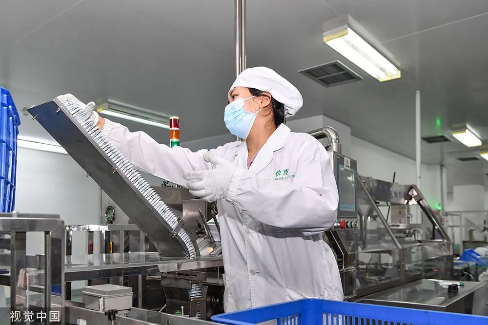 2022年12月10日,海口,海南先声药业有限公司,整个车间开足马力赶制订单。人民视觉 图