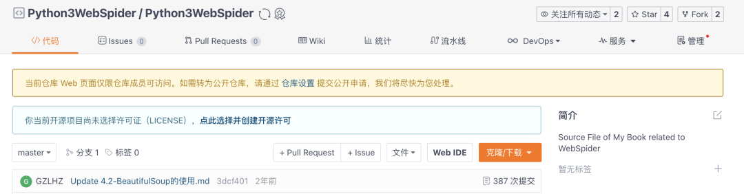 我随便找了一个 Gitee 的仓库看了看,果然我之前的开源仓库变成私有的了:
