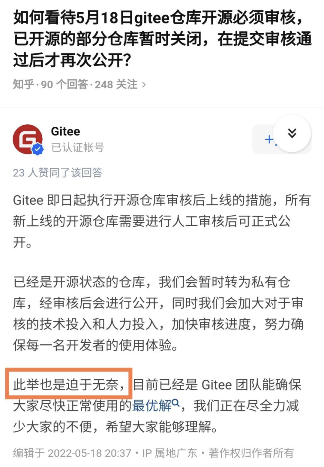 看看 Gitee 官方的表述,自己其实也是“实属无奈”,可能也真是没办法的事情了。