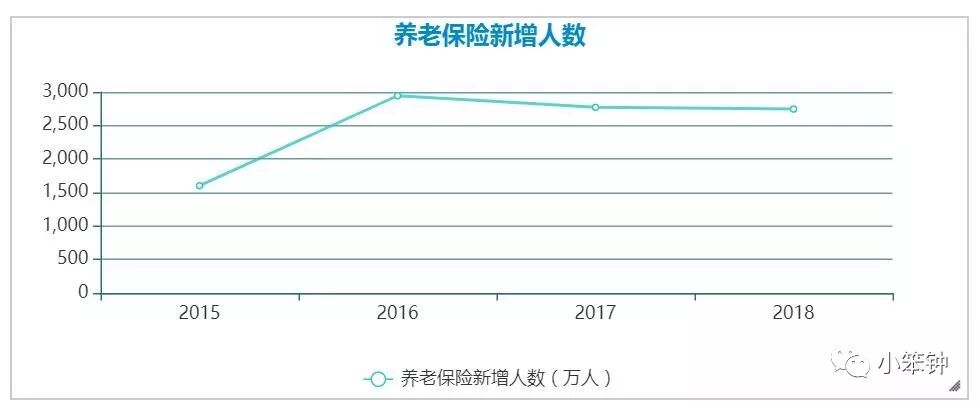 可以看到最近几年每年养老保险的新增人数大概在2700万人左右。