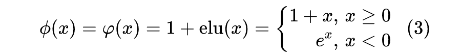 其中 、 是值域非负的激活函数。那么如何选取这个激活函数呢?Performer 告诉我们,应该选择指数函数: