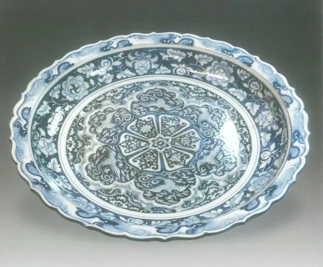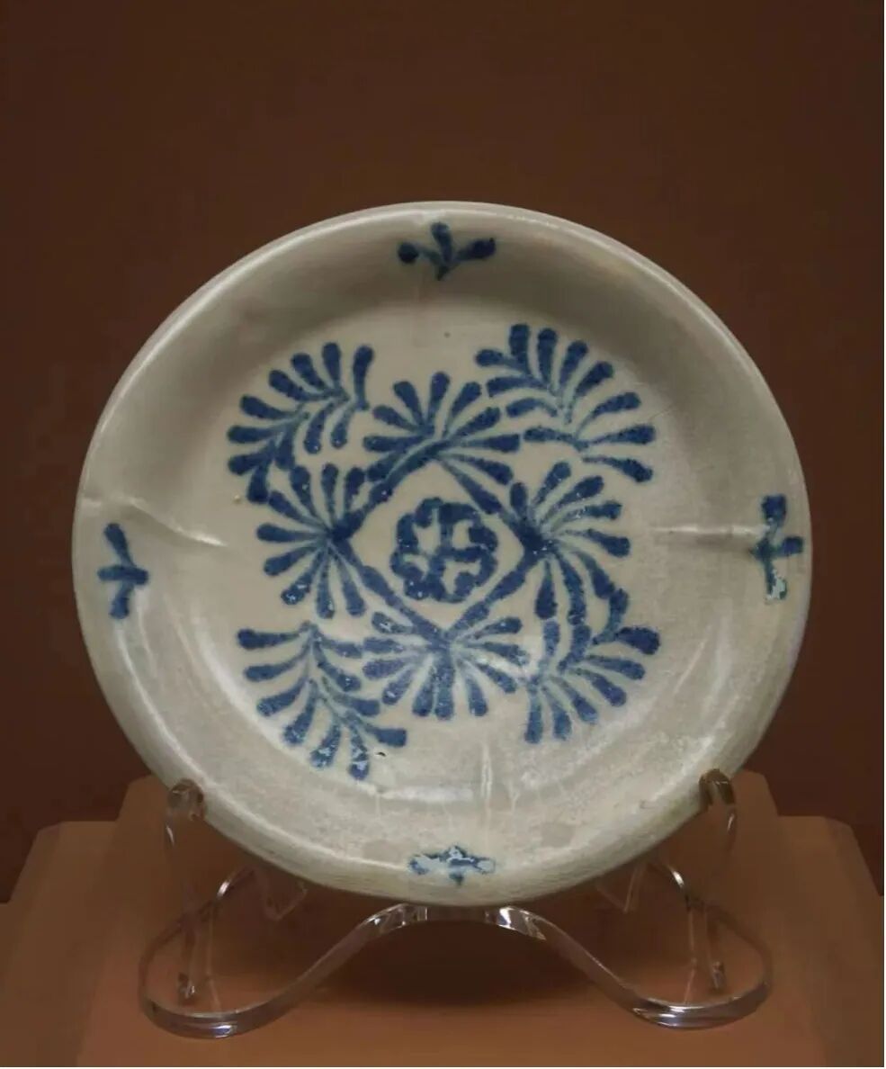 ▲1999年印尼海域打捞出的唐朝沉船“黑石号”上的唐巩义窑青花花卉纹盘 新加坡亚洲文明博物馆藏。