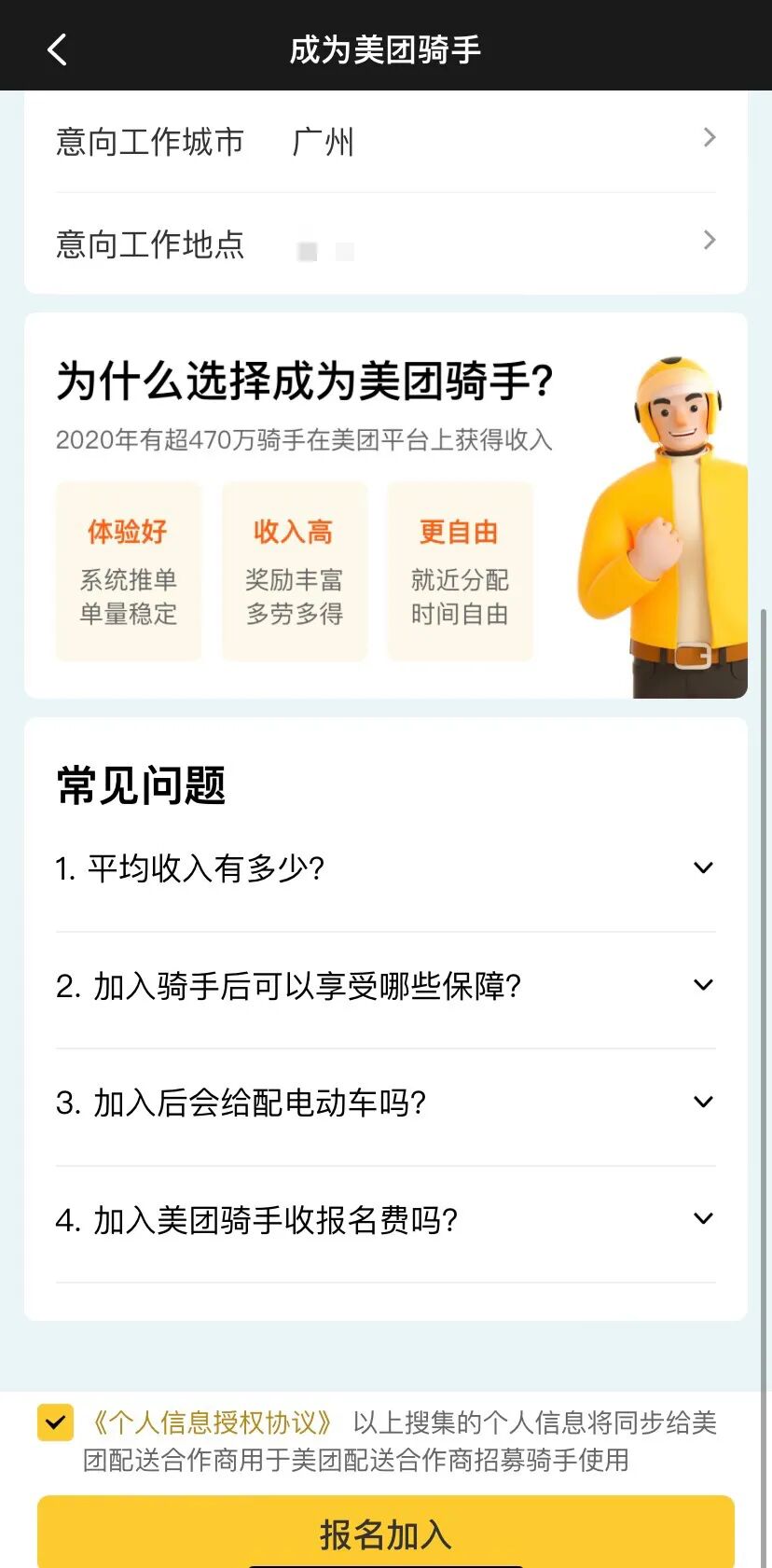2023年11月日,我通过美团骑手(专送)App提交了成为骑手的报名信息。