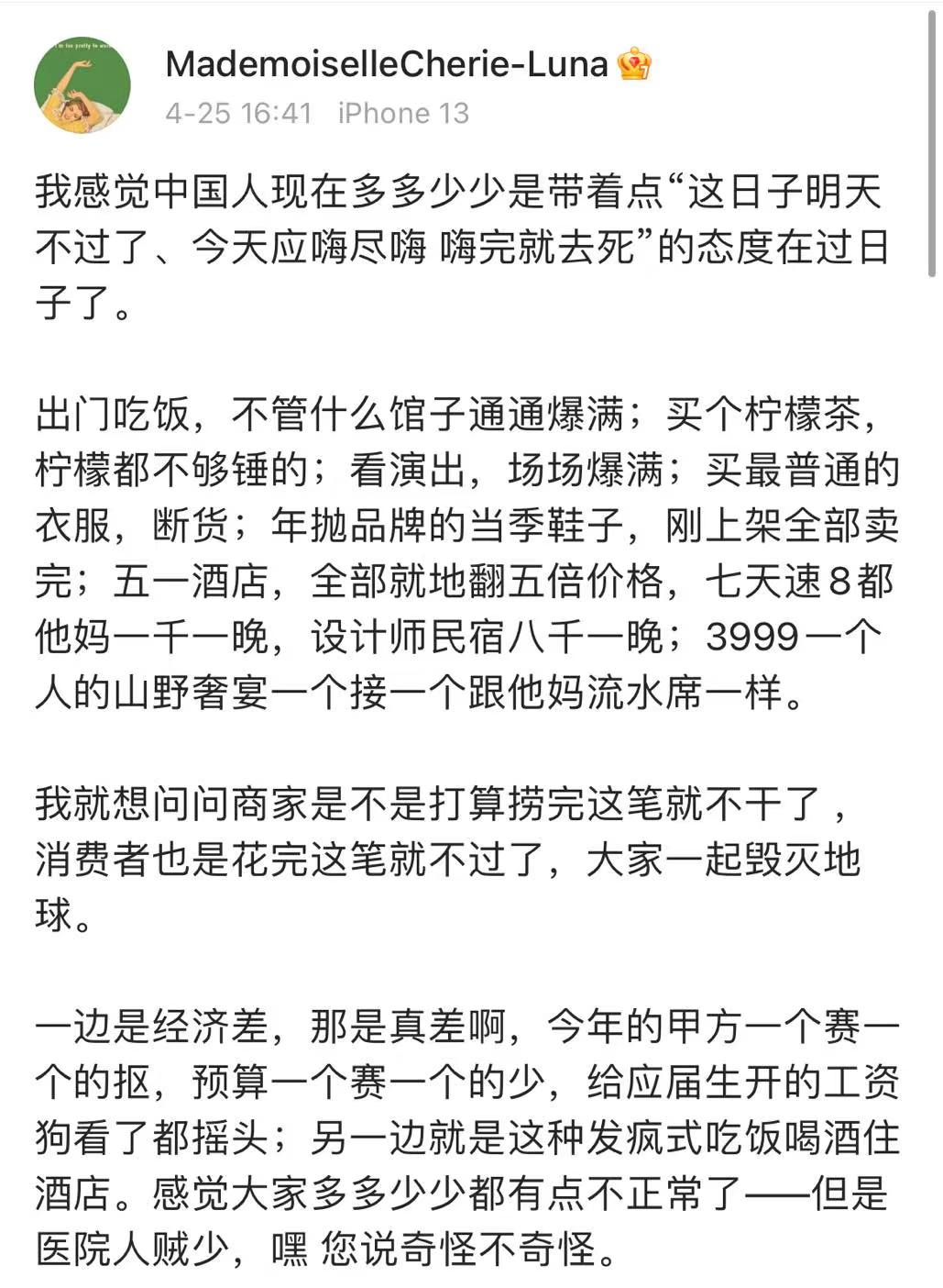 跟着这种喧嚣的玩闹的,是精神上的真萎靡....微博上也有人观察到了,比如寺庙香火大盛,而且是年轻人居多。以前这种中老年妇女的场所,现在一多半是小年轻。