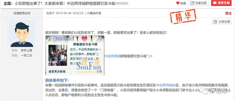 在两湾城群租往事中,除了大房东大多神隐,二房东、租户、普通业主、小区物业,每一方都有自己道理,每一方都有自己心酸苦楚,就像一位网友说的:“期间充满了曲折、玩味和戏剧化。”
