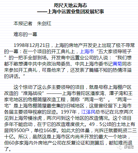 中远两湾城这地块,以前是“潭子湾、潘家湾,普陀两个超大棚户区。1998年开始动迁,影响有多巨大,甚至远在首都的他也非常关心。