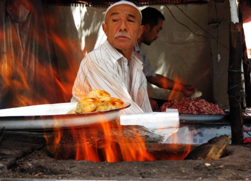 与中国人在正规宴席上习惯饭菜分开不同。中亚的饮食大多是主食与配菜装在一起:各种烤肉、酱汁和蔬菜被放在垫着馕的盘子里,或者将藏红花、洋葱、鸡肉和长粒米饭炒成一碗……这些在中国人看来卖相不佳、鱼龙混杂,只能作为无产阶级果腹的东西,却是伊斯兰社会中上得档次的美食。
