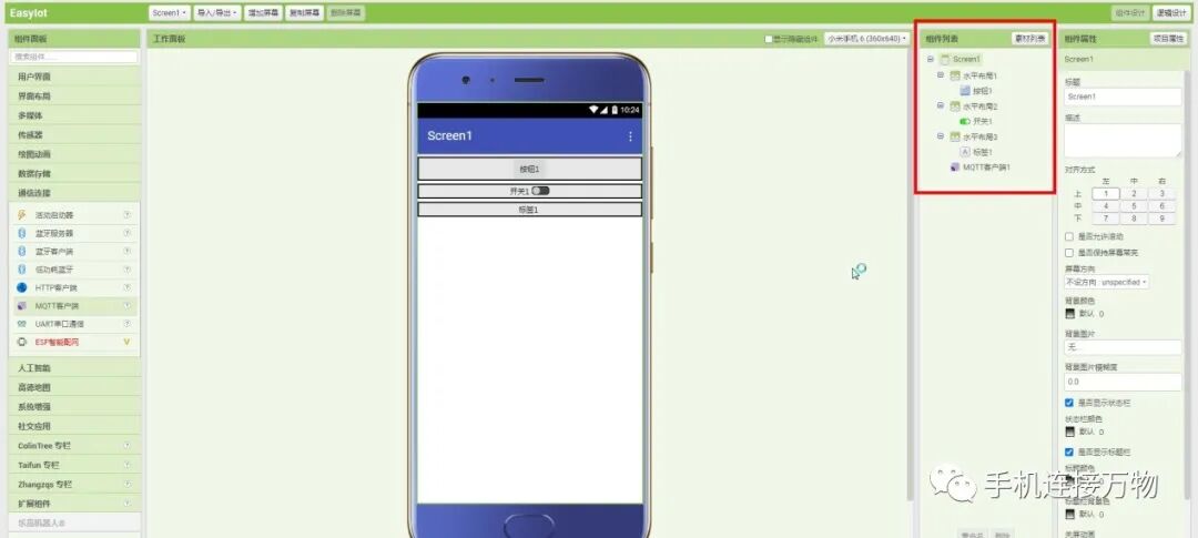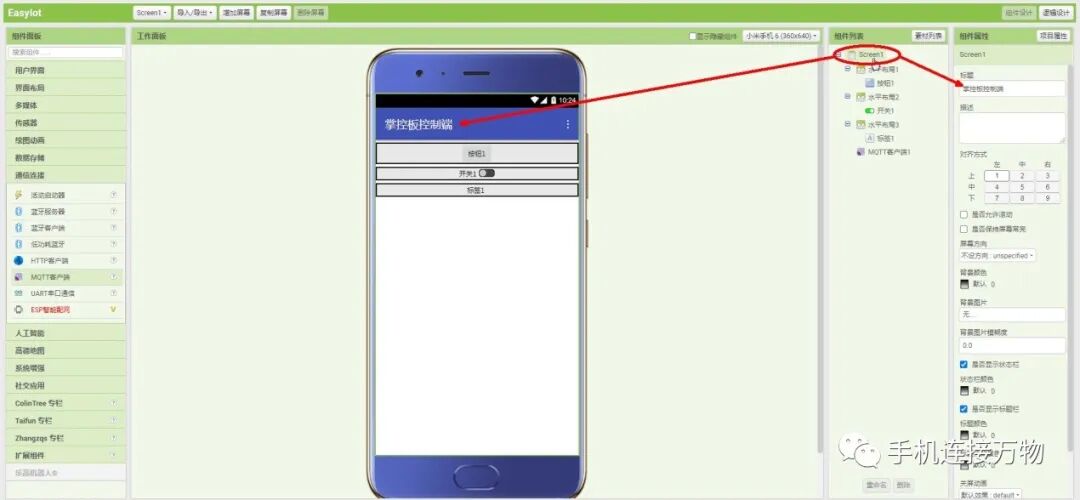 选中“Screen1”,把标题设为“掌控板控制端”: