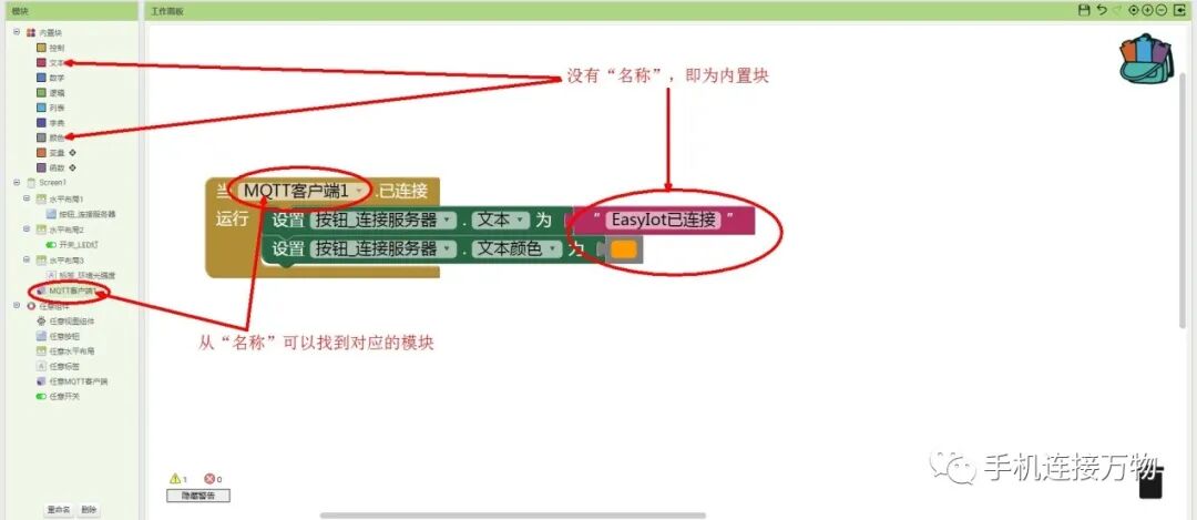 后面的积木将不再详细介绍模块来源,除内置模块外,大家可以从积木的名称上找到它来源于哪个模块。