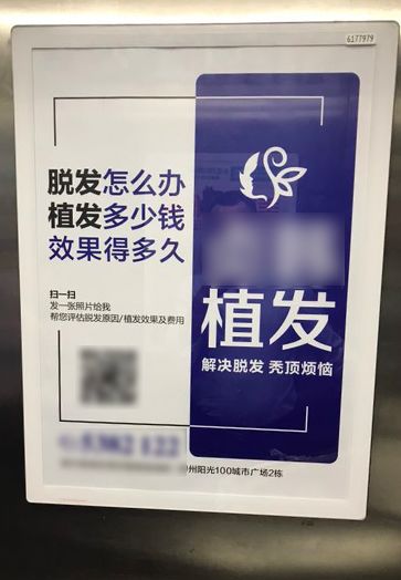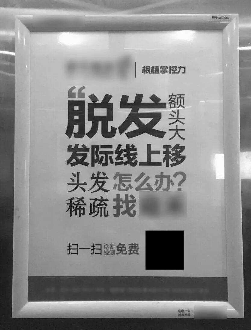 但当院办看到这样一张植发的电梯广告的时候,我又突然觉得文字广告的好了,谁特么要看你植发前植发后的发型变化和毛囊状况!!