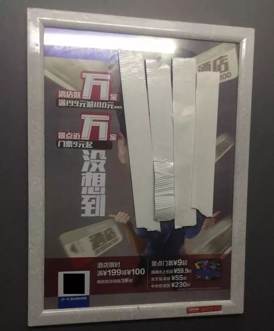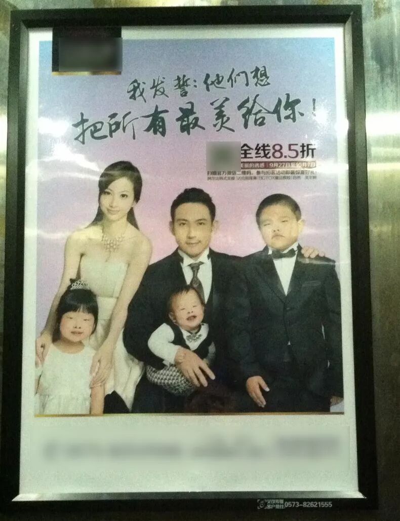 更有因为术前照片太吓人的电梯整容广告,直接被业主贴上纸挡住的:
