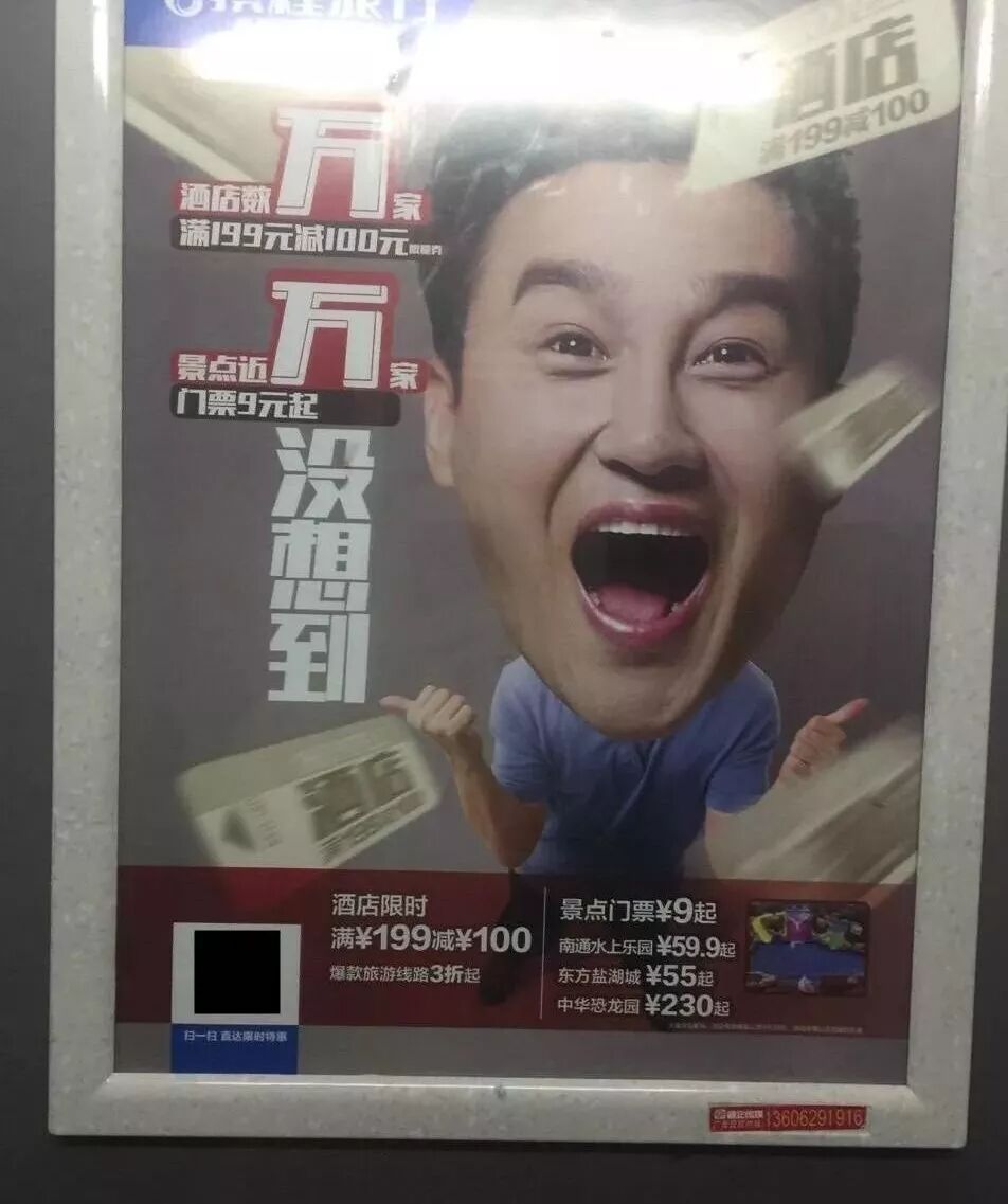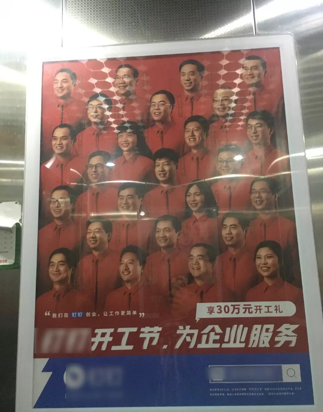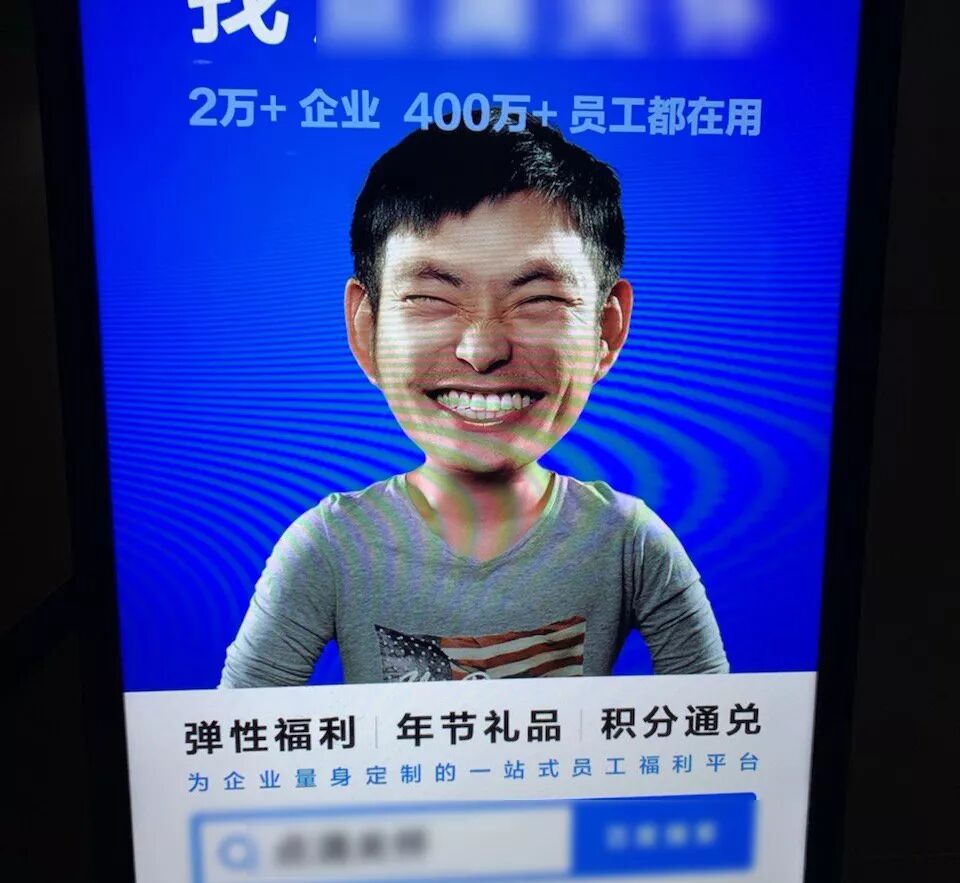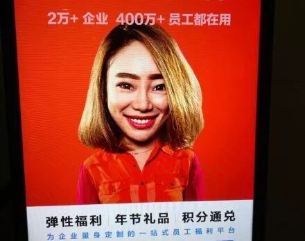 还有些品牌广告策划部也不知道脑子装的什么,非得让你知道我这广告的头很重要,给你强调头,然后简单粗暴地把广告画面的人头给放大、放大、放大,让你走进电梯间的下一秒立马想转身走出去:
