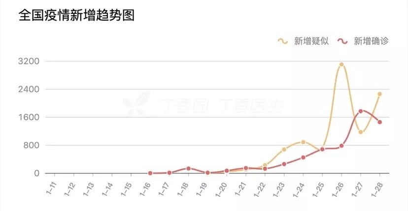 还有一个好消息是,1月28日(昨日)的新增确诊病例首次出现下降趋势。在一线医护人员的辛苦工作和全国人民的共同配合下,疫情正在向好的方向发展。