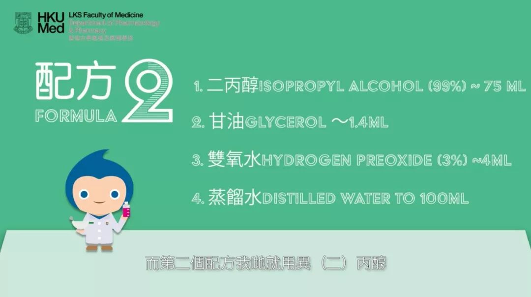 视频中提供了两个不同的配方,大家可参照下方图片和视频在家自制酒精搓手液,保证双手的时时清洁。