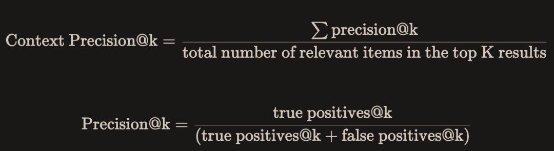 上下文精度的优势在于它能够感知排名效果。然而,它的缺点是,如果相关召回很少,但都排名很高,那么分数也会很高。因此,有必要结合其他几个指标来考虑整体效果。
