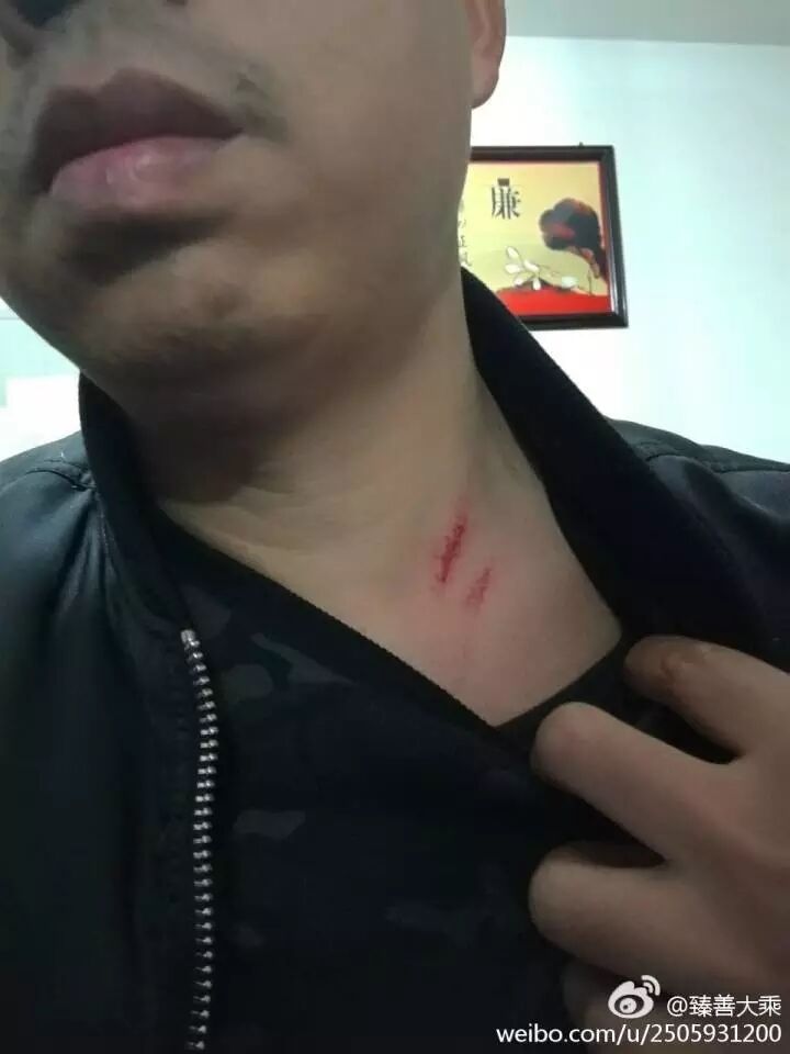 后来我老婆报警了,但是来了几个民警,根本不理我们,我把伤口给他们看,他们也不看,还很严肃把手一推,说:“请你配合他们的工作。”