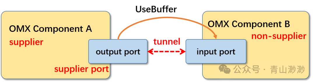 这两个词用于描述隧道组件端口的角色是buffer分配者还是buffer使用者,spec中有描述:在一对建立隧道的端口中,调用UseBuffer的一方被称为supplier port,另一方被称为non-supplier port。